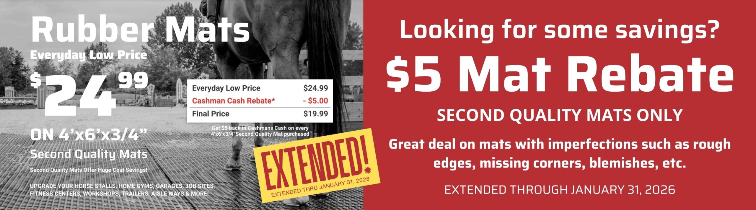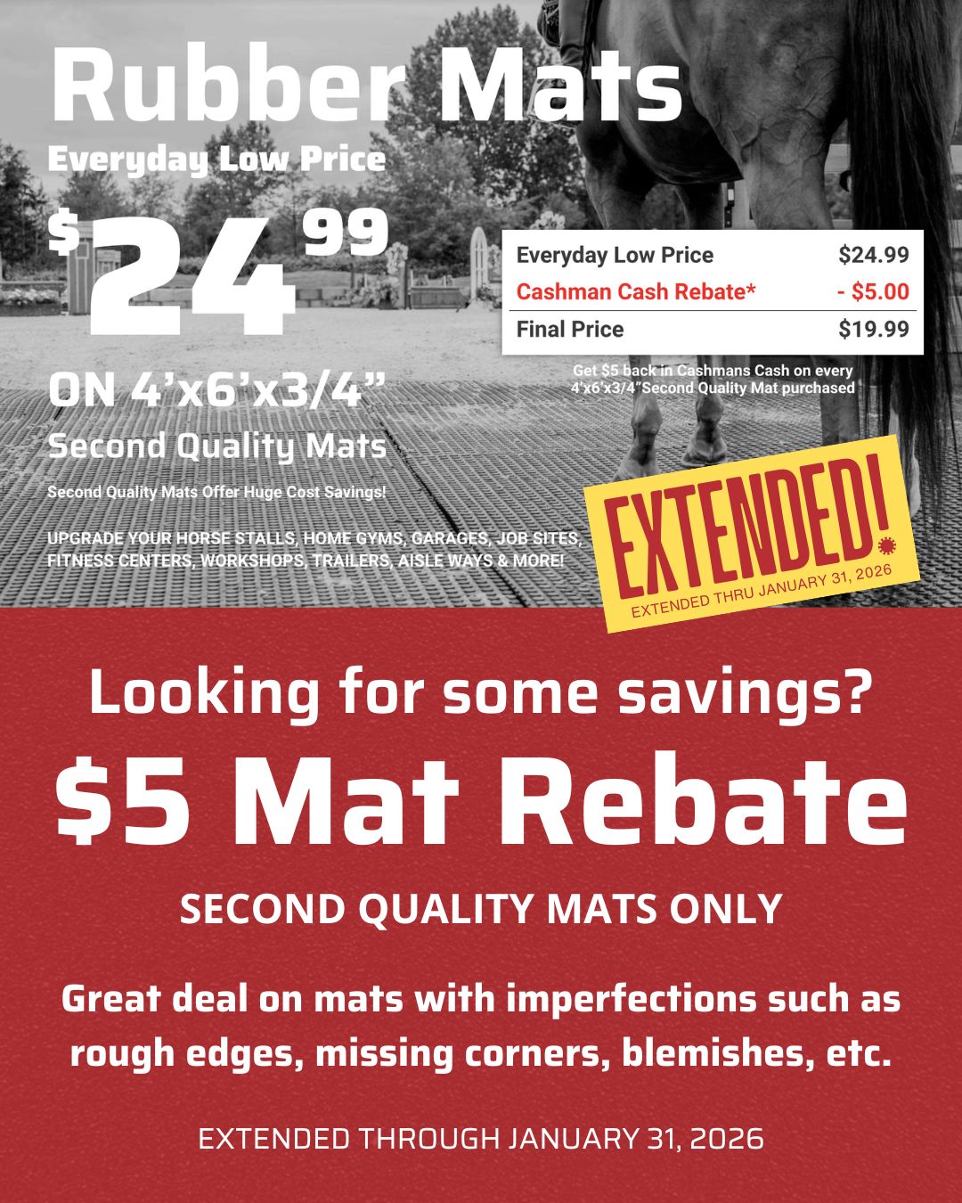 Upgrade your Horse Stalls, Home Gyms, Garages, Job Sites, Fitness Centers, Workshops, Trailers, Aisle Ways & More!