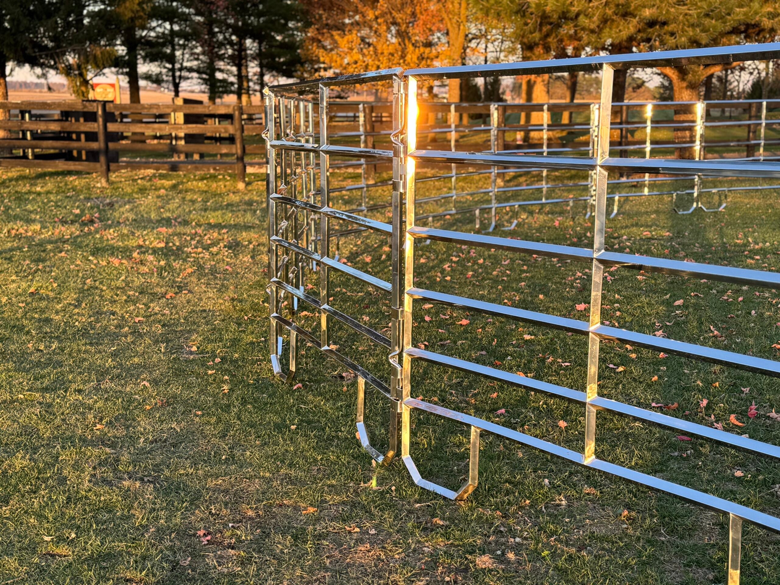 - Integrated Vertical Support (IVS): A single, solid vertical rod passes through each horizontal pipe, offering stronger structural integrity and eliminating external welds that can catch equipment or injure horses.