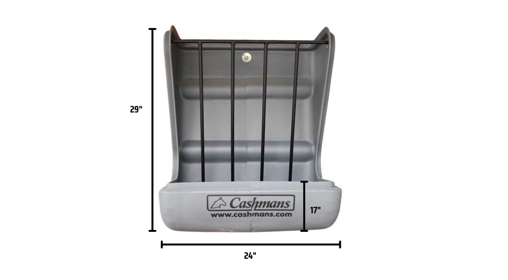 Easily mounted to flat wall surfaces, this grey poly wall mount feeder combines a feeding spot for both hay and grain, creating an easy double access for your horse or livestock animal. The deep grain pan ensures no feed will be wasted falling out of the sides, and simultaneously catches any loose hay from the top.