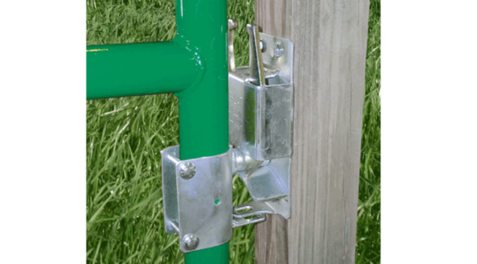 - Latch sits on the inside of the posts