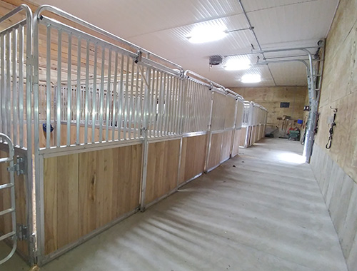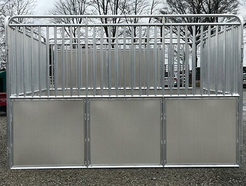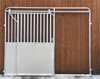Built-in top bar make moving these stall sides a breeze! place forks of fork life under top horizontal bar to life and relocate in large or small barn operations. No fork lift? No problem. These stalls are light enough to move under man power alone yet sturdy enough to keep your horse contained. Choose from 10 or 12′ solid sides, or half grill, half solid sides, in both puckboard and wood. Mix and mach with our aluminum fronts and backs to create the stall size of your choosing.