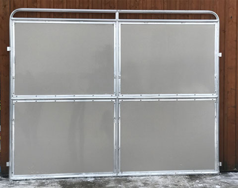 • Panels have 1.5″ square aluminum diamond bar tubing with .125″ wall