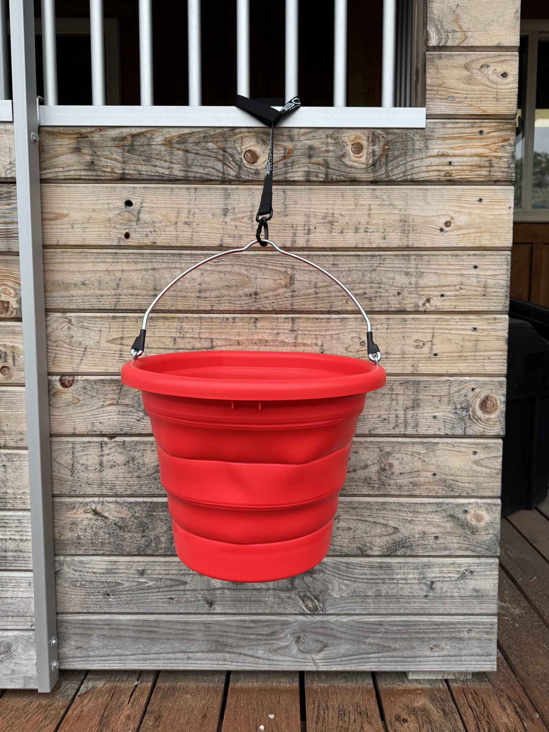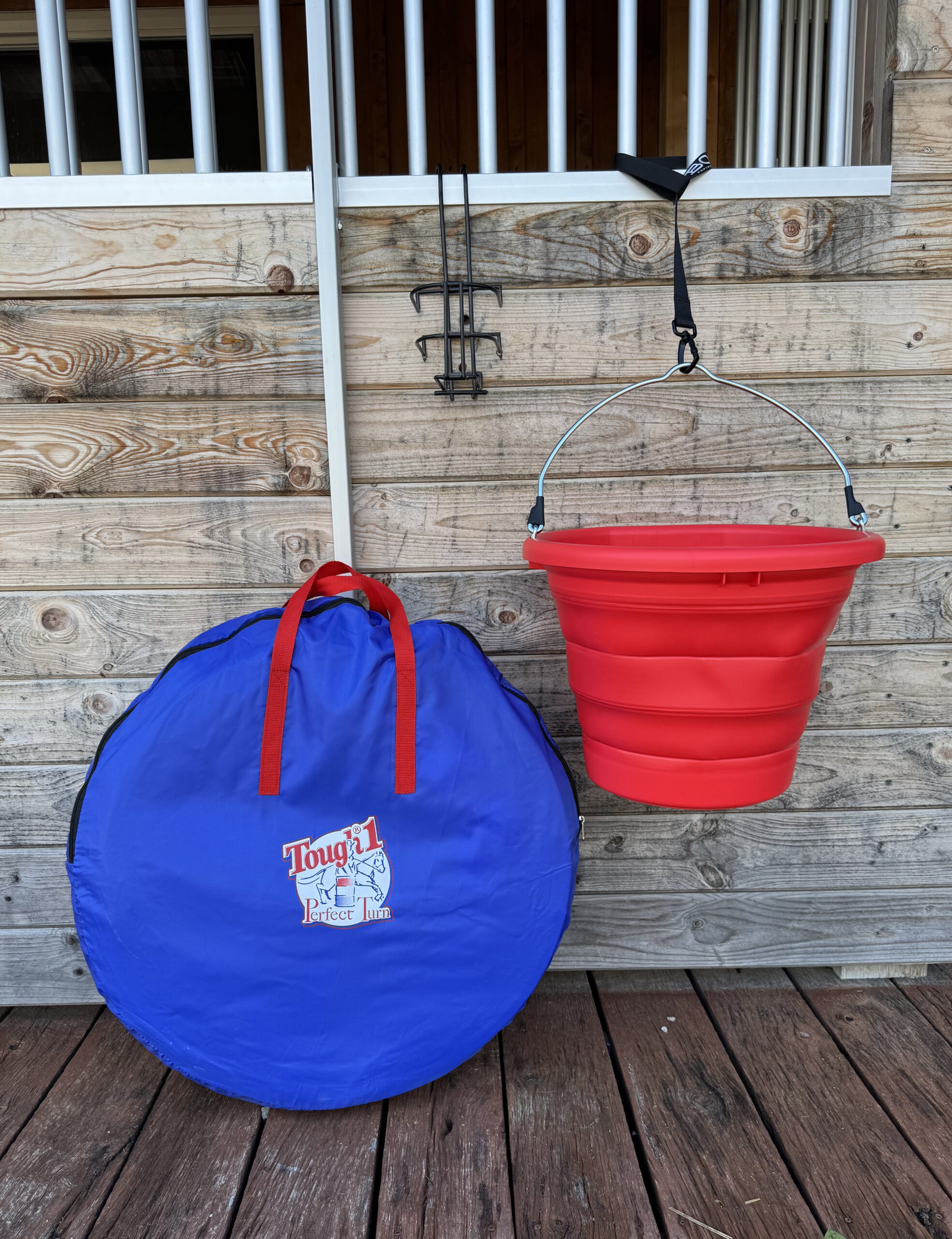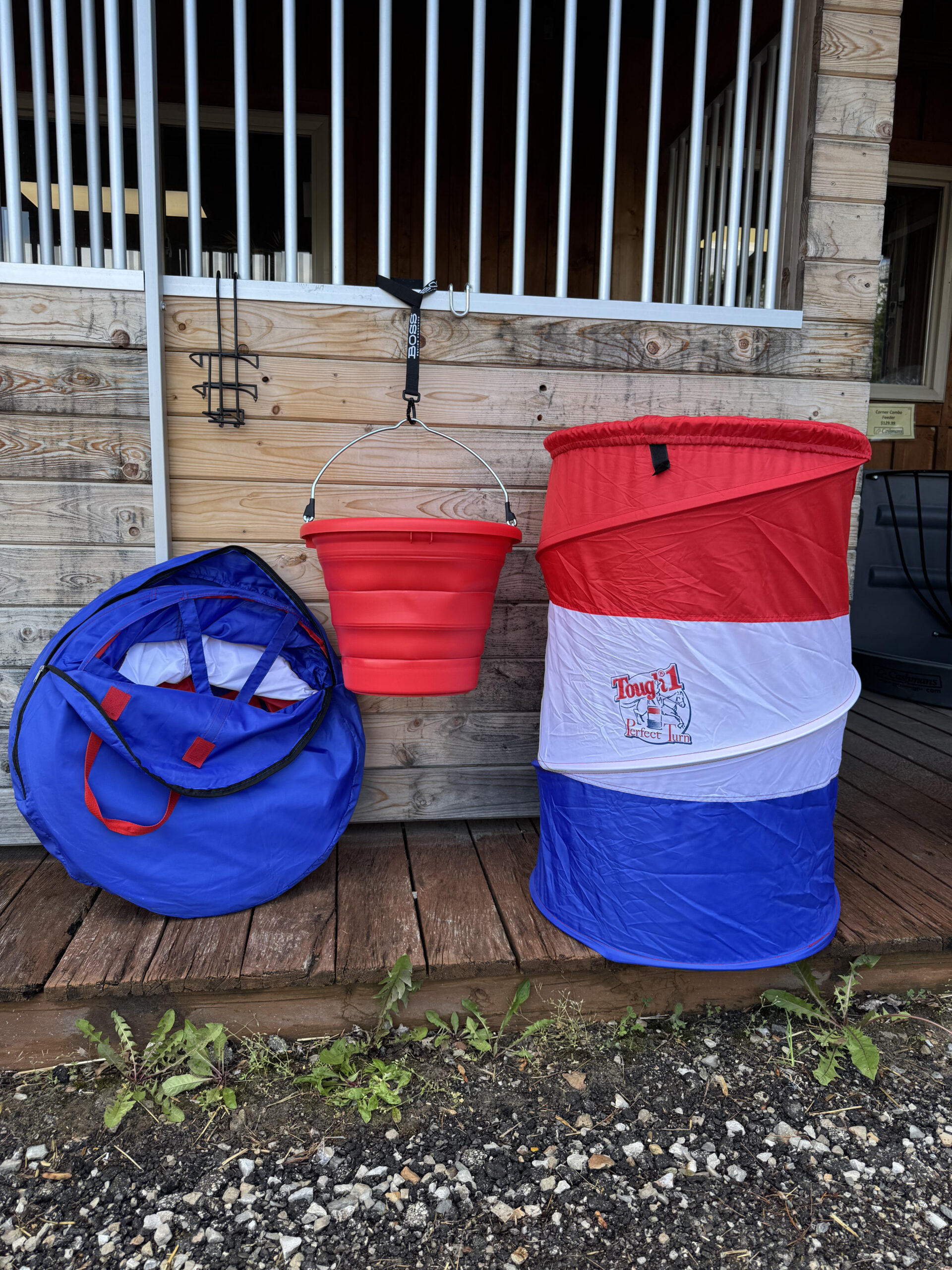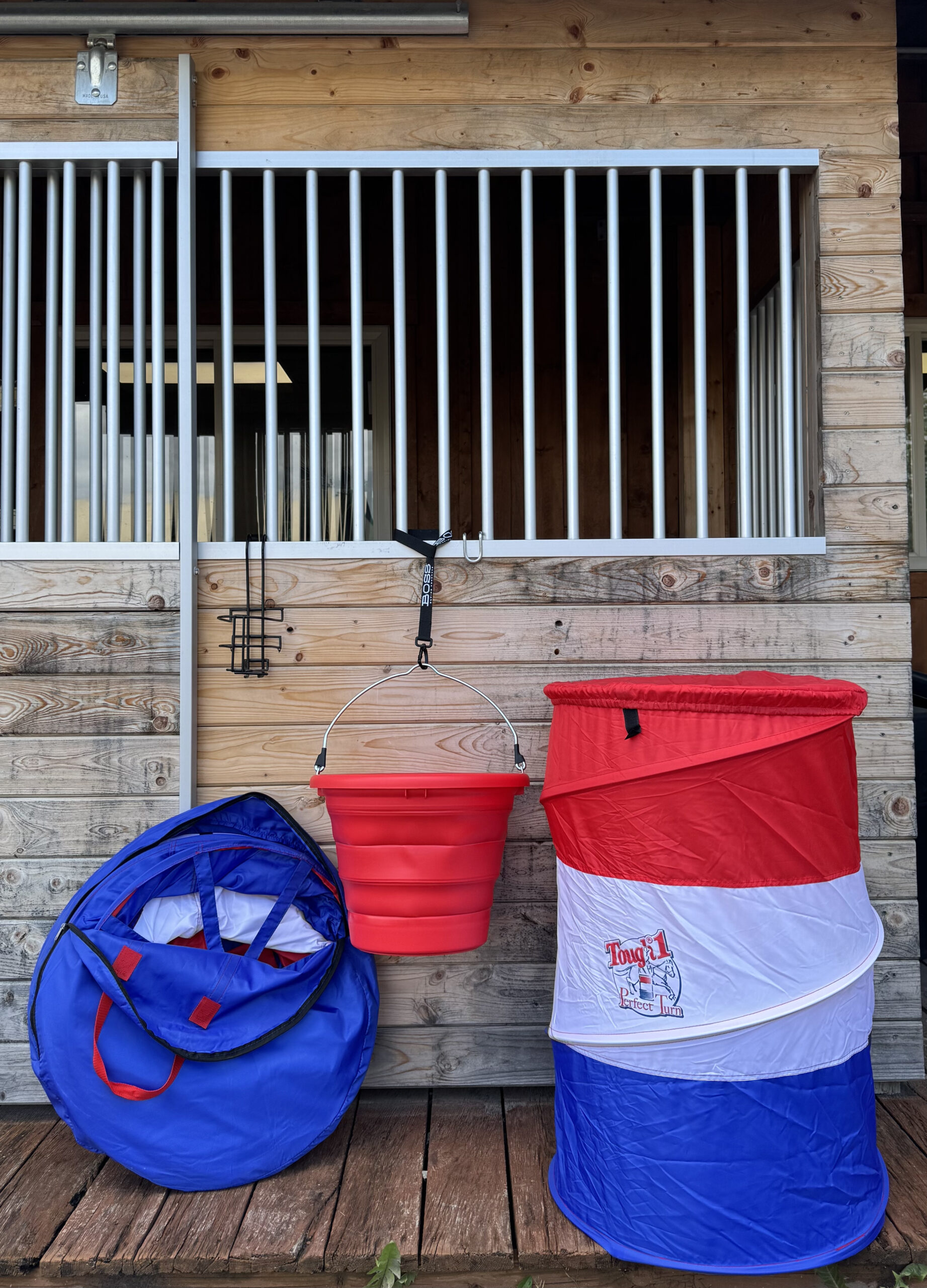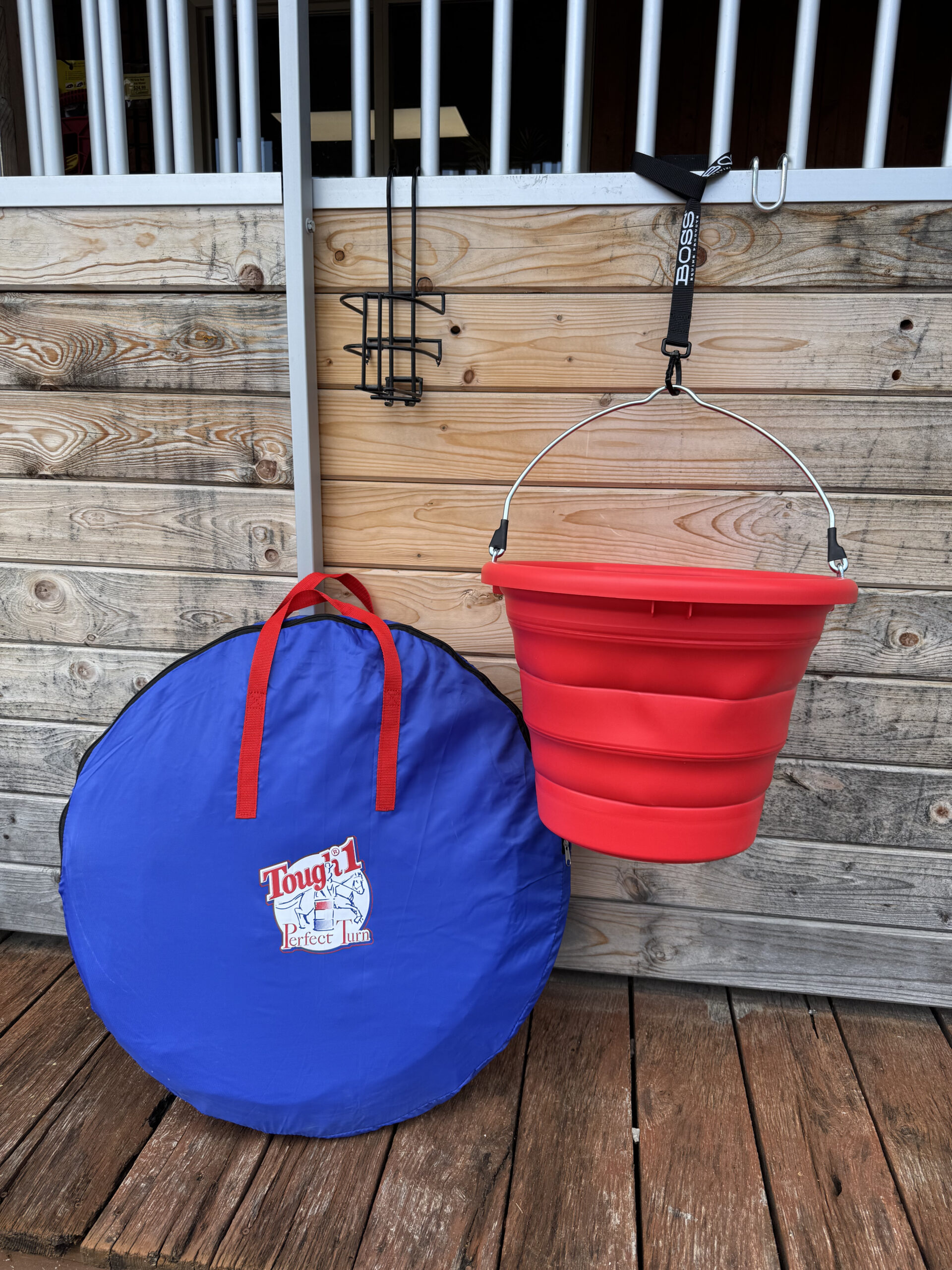 Collapsible BOSS Bucket – Made from tough, UV-stabilized materials, this durable yet flexible bucket holds up to daily use at the barn, trailer, or arena. Folds flat for easy transport and storage. Red bucket included unless other color is requested.